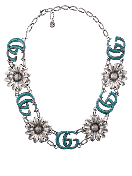 GUCCI ЗАПУСКАЕТ КОЛЛЕКЦИЮ GG MARMONT SILVER JEWELRY Отличительная двойная деталь GG Marmont - один из самых ярких и узнаваемых символов Gucci. Сегодня этот символ вдохновляет новую коллекцию серебряных украшений. Линия включает три женских ожерелья, выполненных в бирюзовой эмали и серебре с античной отделкой. Фокусной точкой этих изделий - цветочный мотив, который был художественно объединен с двойным символом G. Отражая одни и те же коды дизайна, два коктейльных кольца также открывают трехмерный цветочный узор. Одно из них демонстрирует привлекательный красный пестик из эмали. Оба кольца были созданы в форме змеи, выдающегося мотива Гуччи и постоянного источника вдохновения для Дома, в то время как обратные части цветов имеют сложный узор с гравировкой. Еще одна отличительная черта - брошь GG Marmont, на которой изображены мелко выгравированные изображения на обратной стороне.