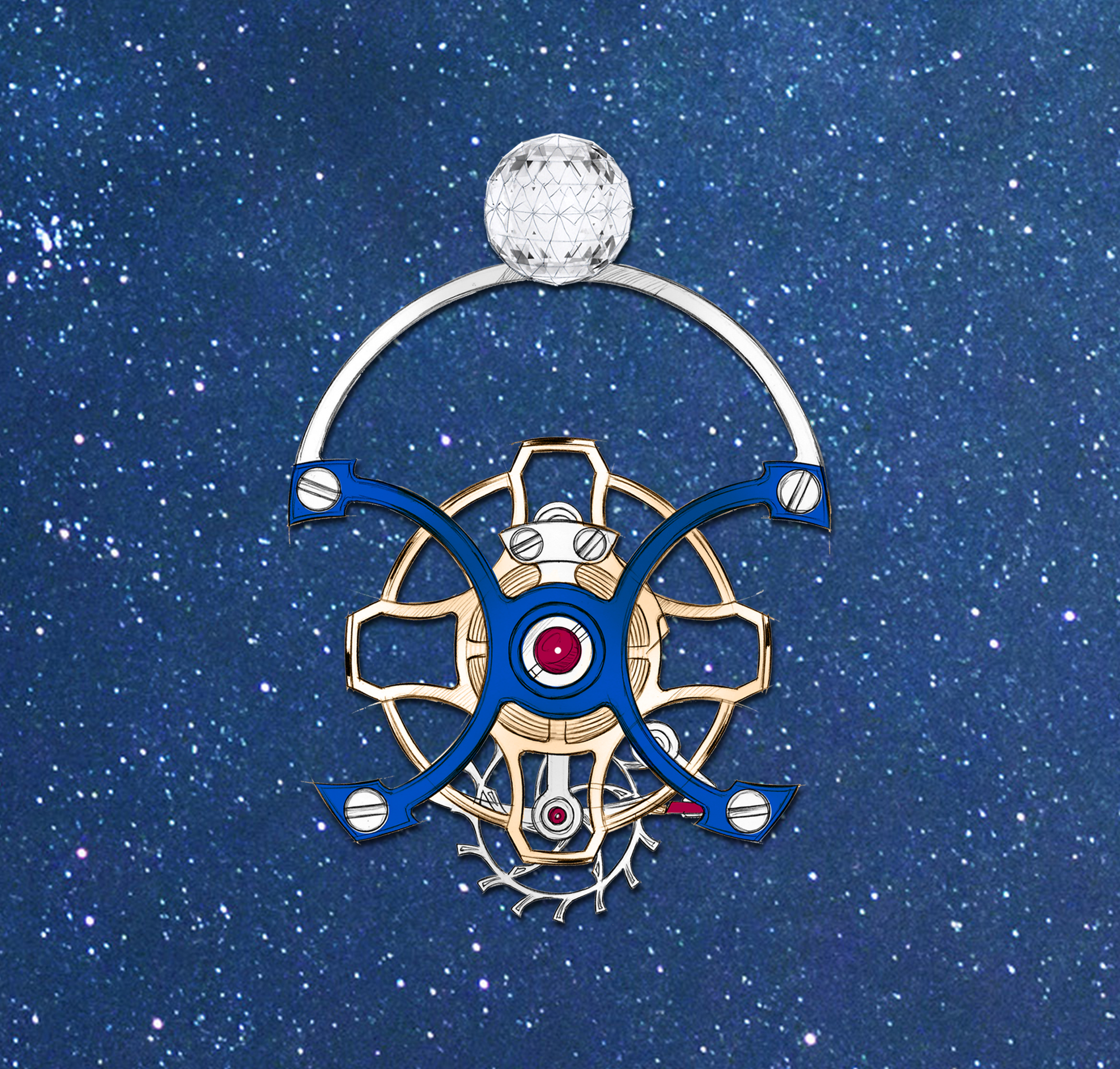 Судьбы Моне - астронома и Леонова космонавта были собраны в «SpaceWalker» - исключительное современное творение, посвященное Алексею Леонову, человеку, который был не только первым, кто свободно вышел в космос, но и был инициатором одного из самых символического жеста во всей истории - межзвездное рукопожатие с его коллегой НАСА в 1975 году, в разгар холодной войны, которое продолжило неожиданную оттепель. На 12 часов изображен сумеречный турбийон, представляющий космический корабль Алексея Леонова в его миссии «Восход-2». Бриллиант вращается вокруг турбийона, представляя самого Алексея Леонова, плывущего в космосе вне его космического корабля. Решение использовать бриллиант было достаточно преднамеренным: «Алмаз-2» был кодовым именем Леонова во время миссии (его партнер был известен как «Алмаз-1»), а «Алмаз» - русское слово для бриллианта. Картина не была бы полной без воскрешения обширности космоса, представленной авантюрным фоном, который становится прозрачным под воздействии света.Циферблат SpaceWalker также является абсолютно новым созданием Луи Моне. Он использует эксклюзивную, секретную графическую композицию, изображающую художественный вид звездного неба, в котором Леонов дрейфовал 12 минут и 9 секунд 18 марта 1965 года. Также видно туманность - собрание межзвездной пыли и газов В честь этих 12 минут, проведенных в космосе, Луи Моне выпустил два ограниченных издания, каждый из которых состоял из 12 выгравированных часов в розовом или белом золоте вместе с двумя другими из 18 полированных моделей, также в белом или розовом золоте.