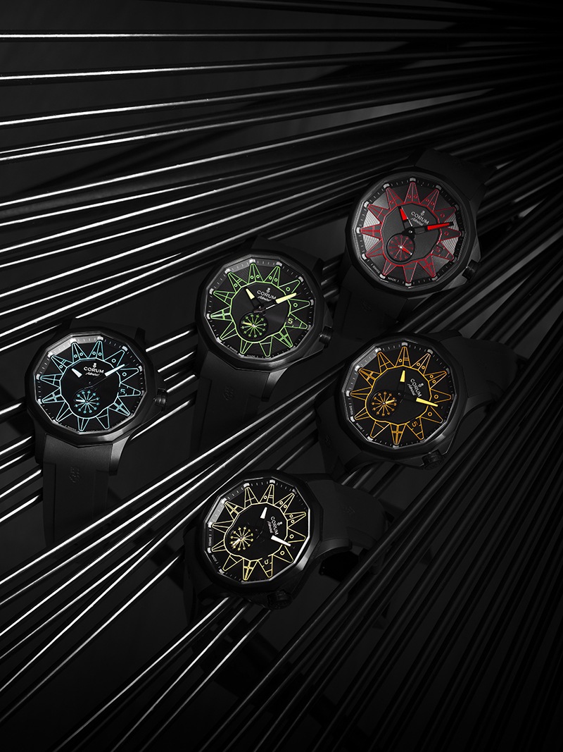 Самой первой моделью Admiral's Cup, родившейся в 1960-х годах, были необычные яхтенные часы с водонепроницаемым квадратным корпусом. Однако коллекция Admiral, с которой мы теперь знакомы, на самом деле является эволюцией модели Admiral's Cup, переработанной в 1983 году, с ее узнаваемым 12-гранным корпусом и навигационными вымпелами на циферблате. За прошедшие годы эта коллекция, посвященная всемирно известной регате, стала не только неотъемлемой частью Corum, но и одной из самых культовых часов в морском стиле на рынке. Одной из наиболее узнаваемых характеристик часов Admiral является использование 12 морских вымпелов в качестве часовых меток. Эти флаги фактически соответствуют Международному кодексу сигналов для обозначения чисел с использованием цветных флагов, поэтому каждый час представлен соответствующим вымпелом. Морские вымпелы, мелкие маркеры, представленные в оттенках серого, чтобы сбалансировать строгость полностью черного дизайна, в то время как маркеры для минут и маленьких секунд становятся видимыми, используя эффект «тон на тон». В этом весеннем сезоне Corum представляет красочные и яркие флаги с часовыми метками: синий, красный, желтый, зеленый и оранжевый.