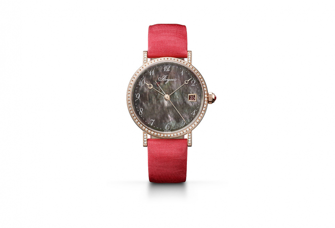 Новый Classique 9065, впервые представленный с очень блестящим таитянским перламутровым циферблатом, добавляет нотку страсти к классическому стилю Breguet. Ярко-красные оттенки согревают композицию, повторяя яркий и сияющий цвет рубина в короне. На золотой секундной стрелке, нежное, багровое сердце бьется в течении бегущего времени. Дата отображается кремовыми цифрами через гранатовое окошко, а переливающийся красный атласный ремешок сияет и подчеркивает сверкающие часы. Для еще большего блеска, 88 ограненных бриллиантов обрамляют корпус из тонкого розового золота и проушины ремешка. Модель бьет в ритме автоматического механизма со всеми необходимыми функциями и 38-часовым запасом хода. Breguet представляет таитянский перламутр Classique 9065 как часть эксклюзивной серии из 28 пронумерованных часов, зарезервированных для своих бутиков.