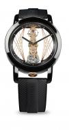 Архитектура является краеугольной темой многих творений Corum. Недавно коллекции Golden Bridge Stream, Round и Rectangle пополнились часами, наполненными уникальной эстетикой на стыке искусства, архитектуры, высоких технологий, изобретательности и традиций Высокого часового искусства. Новая модель Golden Bridge Round 43 Art Deco представляет собой результат такого обновленного подхода к созданию часовых шедевров. Как и любое творение Дома Corum, эти часы потрясают своей изысканностью и художественной выразительностью. Беспрецедентно смелая механика модели приводит в восторг даже искушенных коллекционеров. Ее ключевым техническим решением является легендарный багетный механизм. Он расположен вертикально, вытянут в длину и занимает центральное место в конструкции часов. Эта уникальная структура, не имеющая аналогов в часовой индустрии, стала одним из отличительных знаков Corum, а также олицетворением трансгрессивного характера Дома, объединенного с уважением к канонам Высокого часового искусства. Мосты и платина часов изготовлены из золота, украшены гравировкой с названием бренда и оснащены заводной головкой в положении «6 часов», позволяющей устанавливать время и осуществлять завод механизма с запасом хода 40 часов. По обе стороны от механизма расположены четыре симметричных ряда тросов. Они воплощают архитектурную концепцию коллекции, получившую говорящее само за себя название «мост». Чтобы в полной мере раскрыть идею «моста» (по-английски – «bridge»), Corum превратил часы в выразительную метафору. Символический «мост», поддерживающий конструкцию из колес механизма, является олицетворением реальной архитектурной конструкции, пересекающей города и реки, чтобы соединять