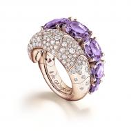 На скульптурных формах, кварцах и бериллах лучи света вступают в пленительную игру, а минералы, перекликаясь друг с другом, вступают в незримый диалог. Фаваз Груози называет кольца, браслеты и серьги с «двойной структурой» буквально – DOPPIA. Кольцо и браслет, одновременно жесткие и эластичные, напоминают обвивающие тело драгоценные пружины. Три типа закрепки камней – крапановая, «снежная» и безельная – позволяют камням раскрыть все свое великолепие. Крапановая закрепка, самая чарующая, удивительная и гармоничная, позволяет украшениям буквально сливаться с кожей. Драгоценные камни – аметисты и аквамарины – поднимаются вверх по спирали, а их крапаны расположены вдоль различных осей. Благодаря особым углам падения света каждый камень, кажется, парит в невесомости. В иллюзорной простоте воплощается ювелирное совершенство.
