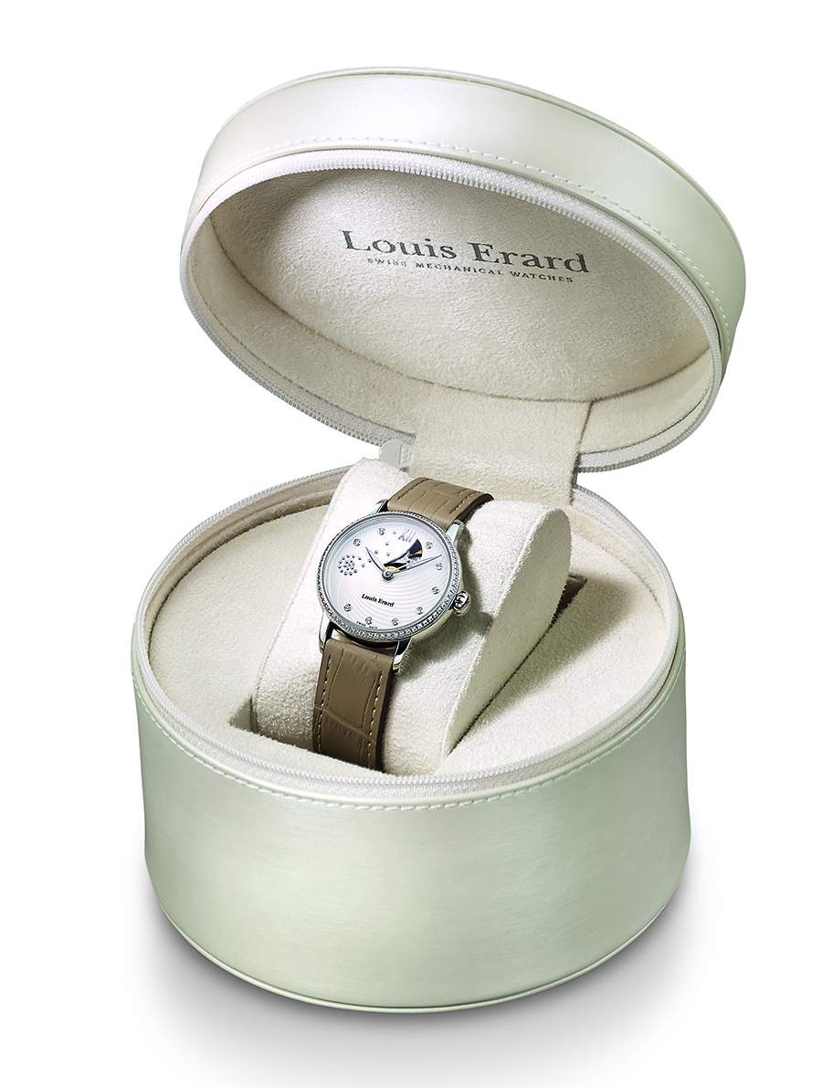 Эта романтичная модель родилась на стыке женской красоты и часового искусства. Она покоряет сердца своими удивительными изысканными контурами, утонченной формой, ослепительными деталями отделки, механическим наполнением и лаконичным дизайном. Часы станут тем элегантным, харизматичным и утонченным спутником, которого ждет каждая женщина. Излучающее женственность творение наделено механическим «сердцем». Обладая аутентичным стилем, оно приглашает в страну фантазий и грез. К нему невозможно оставаться равнодушной, ведь им хочется любоваться снова и снова... Когда время вступает в диалог с женской душой, оно неизменно рождает в ней эмоции. Часы Emotion от Louis Erard раскрывают перед представительницами прекрасного пола доселе неизведанные эстетические горизонты. На белом циферблате с двумя стрелками вырисовывается нежный одуванчик. 23 пучка пушинок из россыпи бриллиантов словно разлетаются по направлению к отметке «12 часов». Несмотря на миниатюрный диаметр – всего 34 миллиметра – лицевая сторона часов радует глаз многочисленными деталями, соперничающими друг с другом по изысканности. Чеканная отделка придает модели легкость, формируя узор из тонких лучей. Девять бриллиантов заметно большего диаметра выполняют роль часовых меток, дополняя цифру XII. Наконец, скелетонизированный элемент в виде полумесяца в положении «1 час» приоткрывает завесу над тайной жизни часов, приводимых в действие механическим калибром. Элегантный и многогранный характер модели подчеркивается корпусом из нержавеющей стали с полированной отделкой или с покрытием из розового золота и безелем в тон. Некоторые модели украшены 68 бриллиантами.