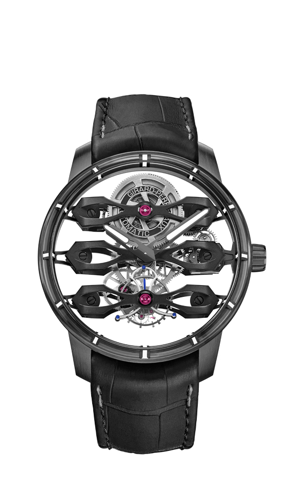 В путь с Aston Martin Оба бренда демонстрируют страсть к изысканному мастерству и работают вместе, делясь своим пониманием дизайна, материалов и технологий. Эта последняя модель посвящена культовым карманным часам XIX века «Три моста» в абсолютно современном стиле, вплоть до мельчайших деталей, включая ремешок. 44-миллиметровый корпус турбийона с тремя парящими мостами - Aston Martin Edition изготовлен из титана Grade 5, прочного гипоаллергенного сплава, выбранного Aston Martin за его легкость. Корпус покрыт черным DLC, придающим часам незаметный вид. Интересно, что титановая руда была обнаружена в Великобритании, на родине Aston Martin, еще в 1791 году английским священнослужителем Уильямом Грегором, в том же году, когда была основана компания Girard-Perregaux. Продолжая традиции Girard-Perregaux, эта модель умело играет с пропорциями и формами, к большому удовольствию эстетов.