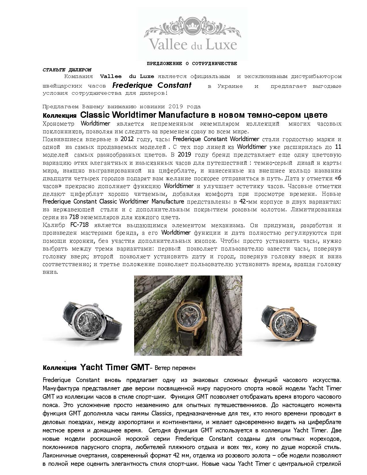 Предложение о сотрудничестве Frederique Constant 2019/09