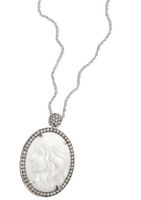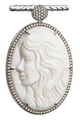 Французские ювелиры Mauboussin презентовали новую винтажную лимитированную коллекцию из белого золота и перламутра. Перламутр в переводе с немецкого означает "мать жемчуга", удивительный и загадочный декоративный материал, который с древних времен используется мастерами - ювелирами для инкрустирования украшений. По прочности он не уступает драгоценным камням, а по красоте, изысканному сочетанию разнообразных опалесцирующих бледно-голубых, розовых, красно-оранжевых, даже черных оттенков, не имеет себе равных. Коллекция Emotion включает в себя кольца, подвески, серьги и броши из белого золота, украшенные резным перламутром молочно-розового цвета, с изображением портрета французской девушки, элегантной и прекрасной. Светло-коричневые бриллиантов, подчеркивают нежность перламутра и служит своеобразной рамкой для резного портрета. |