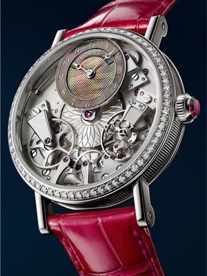 Несомненно, элегантные, технично выполненные часы Breguet коллекции Tradition, отличающиеся ультрасовременной, графической структурой, с гордостью демонстрирующей почти все элементы механизма по обе стороны платины, имеющие особый не подряжаемый и узнаваемый образ захватывают дух. И несомненно в этой сугубо мужской коллекции рано или поздно должна была появиться женская модель которая в питает в себя всю оригинальность и эстетичность присущую коллекции и приумножит ее шармом и элегантностью присущей женским часам коллекций Breguet.