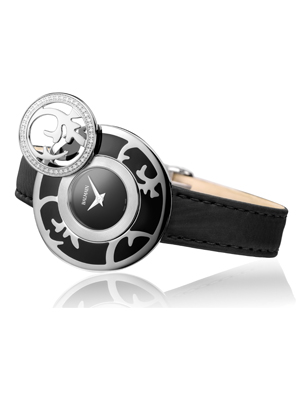 Еще большей схожести с украшением придает часам металлическая маска накрывающая циферблат. Маска так же украшена узором арабески. При желании данный элемент можно легко снять, таким образом, открыв циферблат и слегка подизменить внешний вид часов. В зависимости от модели, Balmain Fairy Arabesques предлагаются с масками инкрустированными бриллиантами.