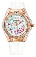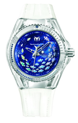 Часы Cruise Beach, TechnoMarine, сталь, сапфиры, бриллианты, перламутр, ремешок силикон. Обладающие невероятным позитивным зарядом часы украшены перламутровым циферблатом, на котором изображена сцена из жизни обитателей морского дна. Часы весьма кстати на летний период, ведь их можно одеть как на пляж, прогулку на яхте или вечеринку на Ибице. Обратите внимание как деликатно выглядит деграде из сапфиров, расположенных по безелю. |