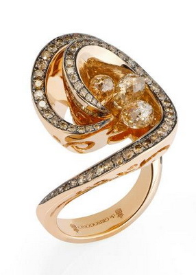 При создании очередной роскошной коллекции ювелир и дизайнер Фаваз Груози не редко вдохновляется природой, её великолепными красками и формами. Великолепные коллекции de Grisogono - Chiocciola и Chiocciolina - не являются исключением. В переводе от итальянского "chiocciola" означает улитка, формы которой нашли безупречное отражение в сверкающих кольцах. Чарующее сияние великолепно ограненных камней, как магнитом, притягивает взгляд. А какие смелые сочетания форм, материалов, оттенков являет свету фантазия ювелира! |
