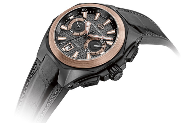 Новые особенные часы отмечают страсть мануфактуры к кино и намекают на связь с ним, недаром компания является эксклюзивным хронометристом и со основателем музея Новой академии кинематографа, что будет расположен в Лос-Анджелесе. Часы Girard-Perregaux Chrono Hawk Hollywoodland обладают 44-мм керамическим корпусом и лицевой и задней крышками из анти-бликового сапфирового стекла. Безель из розового золота придает часам совершенный вид и особый дух и прекрасно сочетается с черным керамическим корпусом. Chrono Hawk Hollywoodland оснащены автоматическим механизмом Girard-Perregaux GP03300-0073 Mechanical с запасом хода в минимум 46 часов. Циферблат представляет люминесцентные стрелки и индексы, счетчики хронографа и апертуру даты на позиции 6-ти часов. Girard-Perregaux Chrono Hawk Hollywoodland дополняются стильным технологичным ремешком на основе каучука, покрытой черной кожей аллигатора и титаном PVD с керамической раскладывающейся застежкой. |
