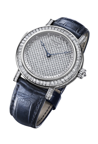 Специально для коллекционеров уникальных часов компания Breguet приготовила приятный сюрприз – новинку Classique Grande Complication 7639. Эта модель оснащена минутным репетиром, одним из престижных часовых усложнений, а ее корпус и циферблат инкрустированы бриллиантами огранки «багет». Драгоценные камни не бывают лишними в часах, но компания Breguet использовала их не только ради декора. Тесты акустической лаборатории компании доказали, что эти драгоценные камни значительно уменьшают вибрацию корпуса при работе репетира, при этом звук получается кристально чистым. Основные черты дизайна Classique Grande Complication 7639 позаимствованы из общей концепции коллекции «Классика» - это квинтэссенция фирменного стиля, с его пуристическими чистыми линиями и непревзойденным качеством.