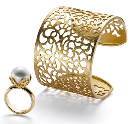 Немецкий ювелирный Дом представил на международной выставке часов и ювелирного искусства Baselworld 2014 свои новинки. Новая коллекция состоит из нескольких линий. Главными четами ювелирных украшений Cut Off Pearl Style стали цветочные кружевные узоры, выполненные из золота и серебра. Одни модели дополнены белыми жемчужинами Южных морей и темными жемчужинами Таити, другие оставлены нетронутыми. |