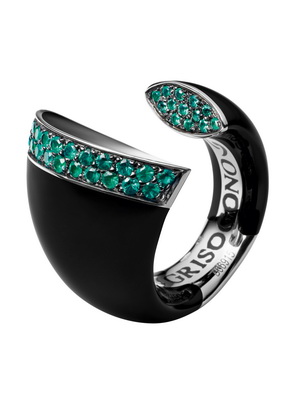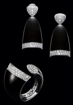 Используя инновационный материал - углеродистое волокно, компания de GRISOGONO создала свой новый, своего рода драгоценный материал. Пока чрезвычайно трудное в обработке и формовании, углеродистое волокно, очень прочно, надежно и имеет легкий вес. В конце концов, углерод, сам по себе, по-настоящему драгоценный. Алмазы состоят из чистого углерода. Именно это факт и лег в основу применения в изготовлении дорогих украшений ультра нового материала. Драгоценный набор камней в сочетании с глубоким черным цветом углеродистого волокна создают поразительный контраст, который делает ударение на ярких цветах изумрудов, сапфиров и алмазов. |