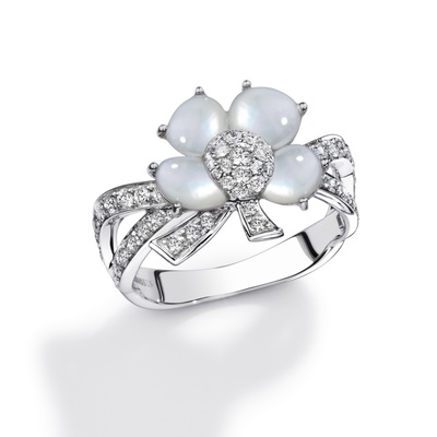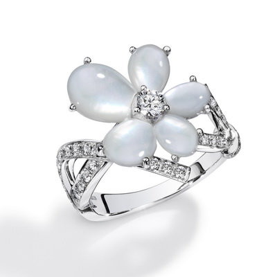 Название коллекции говорит о многом. Сложно представить себе более нежные и изящные украшения, чем новые изделия французского ювелирного дома Mauboussin - три вида колец на выбор, 0 отличающиеся размером , подвески, серьги, браслет из белого золота 18 карат, декорированного перламутровыми каплевидными лепестками и бриллиантами- это именно то, что следует преподнести в дар юной красавице от любимого мужчины. |
