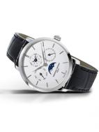 Кнопки размещенные с обеих сторон корпуса служат для удобного управления механизмом календаря. Кнопка в положении «5 часов» отвечает за регулировку указателя фаз Луны, другая кнопка, расположенная у отметки «8 часов», используется для настройки дня недели, а кнопка в положении «10 часов» позволяет одновременно корректировать день и дату. При настройке вечного календаря нужно сначала задать дату, а затем – день недели. Наконец, кнопка в положении «11 часов» служит для одновременной индикации месяца и високосного года. Положение часовой и минутной стрелки регулируется с помощью заводной головки.