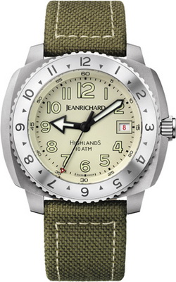 Дизайн новой модели Highlands Sand часов JEANRICHARD при первом же взгляде вызывает ассоциации с большими открытыми пространствами, природой и простотой. Блестящие фотографии Питера Берда (Peter Beard), использованные в рекламе марки, иллюстрируют фантастический и богатый мир, навевающий воспоминания об африканских пейзажах. Сегодня компания JEANRICHARD представляет новую интерпретацию этих часов, которая верна «характеру» предыдущей модели и готова к любым приключениям. Первое, что бросается в глаза – значительное изменение дизайна корпуса. В основе дизайна по-прежнему круглый безель, закреплённый на корпусе в форме «тонно». С художественной точки зрения новая модель демонстрирует новое переосмысление проверенных временем форм. Благородные пропорции корпуса (44,5 мм x 40 мм) подчеркивают надёжность конструкции. Корпус водонепроницаем до 100 м, завинчивающаяся заводная коронка гарантирует оптимальную защиту. В качестве одного из технических усложнений новых моделей используется вращающийся зубчатый безель для определения времени второго часового пояса. Циферблат цвета экрю выполнен в стиле оригинальной модели 1980-х годов. В виде часовых отметок используются арабские цифры, стрелки с люминесцентным покрытием обеспечивают лёгкость определения времени при любых обстоятельствах. Часы Highlands Sand имеют текстильный ремешок и со складной безопасной застежкой в полном соответствии со стилем жизни, который они отражают. Нет необходимости говорить, что и в этих часах используется часовой механизм собственного производства JR1000. Этот часовой механизм с автоматическим подзаводом, известный своей надежностью и качеством, остаётся открытым взгляду через заднюю крышку часов из сапфирового стекла. Предлагаются также модель Highlands Baobab с циферблатом цвета «хаки» и модель Highlands Ebonyс чёрным циферблатом. |