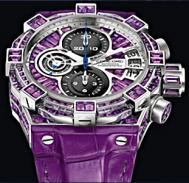 | Выпущенная в единственном экземпляре модель С1 Amethyst от Сoncord поражает своей красотой. Корпус, диаметром 45 миллиметров выполнен из белого золота 18 карат и украшен 219 багетами из аметистов. Аметистами же украшен и циферблат часов, заводная головка и кнопки хронографа. Функции часы, минуты, секунды дата хронограф запас хода 48 часов механизм автоматический Valgranges, сертифицирован COSC |
