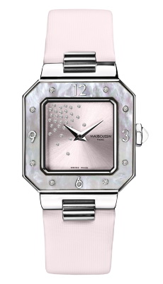 | Как всегда изысканные и нежные украшения создает ювелирный Дом Mauboussin. В данном случае речь идет об оригинальных швейцарских наручных часах для прекрасной половины человечества. Корпус часов - прямоугольный или круглый, выполнен в стали, декорированной перламутром и бриллиантами, выполняющими функцию индексов Циферблат часов украшен бриллиантовым "дождем" и смотрится очень эффектно. Обладательнице таких часов гарантировано весеннее настроение, тем более цена новинки очень радует своей демократичностью. Снова ювелирный Дом Mauboussin - на высоте. |
