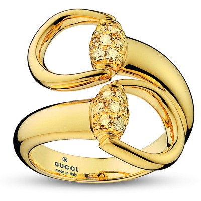 В 1950-е годы марка Gucci сделала не то чтобы резкий, но решительный поворот в сторону спортивного стиля – яхтинга и конного спорта, Именно в тот период у Gucci появились коллекции с деталями в форме удил, элементов конской упряжи. Ювелирная коллекция под названием Horsebit – самая известная и популярная у Gucci, развиващаяся в самых неожиданных направлениях. По большей части Horsebit – это повседневные динамичные украшения - роскошные серьги, браслеты и кольца в которых золотые удила играют важную роль, как центральный элемент, украшенный драгоценными камнями |