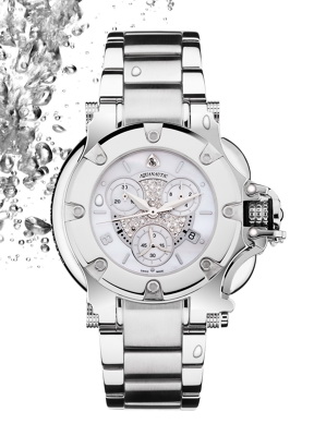 | Коллекция женских часов для активного отдыха Bara Cuda – одна из первых и очень популярных в истории бренда. Поэтому, молодой и перспективный бренд швейцарских часов Aquanautiq развивает и дополняет полюбившуюся коллекцию новими моделями. В начале 2011 году, к летнему сезону, была презентована новинка -Bara Cuda White - стальной хронограф на браслете. Безель часов декорирован белой фигурной накладкой из полированной стали , циферблат - белым перламутром, а счетчики хронографа – белыми бриллиантами. |