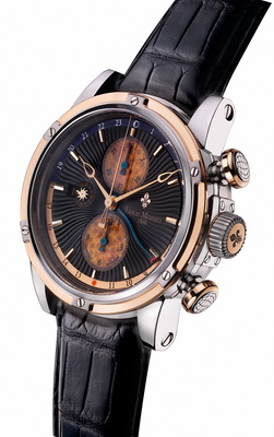 | Новинка Louis Moinet 2011 года уже доступна покупателям Украины Дизайн модели вдохновлен хронометрами Louis Moinet 1820 года, а также часами "return from Egypt", созданными для Маршалла Хоакима Мурата. Символизирующая спасение малазийских тропических лесов Белум-Теменгор модель в буквальном смысле этого слова несет в себе кусочек леса – счетчики хронографа на ее циферблате выполнены из древесины пальмы тропических лесов Юго-Восточной Азии, возраст которой составляет более 70 миллионов лет. Корпус модели диаметром 45, 5 мм и толщиной 17.07 мм с безелем на 6 винтах выполнен из нержавеющей стали и розового золота, кнопки хронографа украшены мотивом атласа, напоминающим о путешествиях по Миру. Модель оснащена автоматическим механизмом с 48-часовым запасом хода. Поставляется на ремешке из кожи луизианского аллигатора. Средства, вырученные от продажи каждых 120 часов Geograph Rainforest, будут перечислены в фонд PULAU BANDING Foundation, созданный с целью сохранения малазийских тропических лесов Белум-Теменгор - одних из самых древних в Мире тропиков (около 130 миллионов лет). Функции: - часы, минуты, секунды - дата - хронограф - второй часовой пояс Корпус: - нержавеющая сталь 316L и 18К розовое золото - диаметр 45, 5 мм, толщина 17, 07мм - сапфировое стекло с двусторонним антибликовым покрытием - водонепроницаемость 100 м Ремешок: - кожа аллигатора - раскладная застежка из нержавеющей стали 316L |