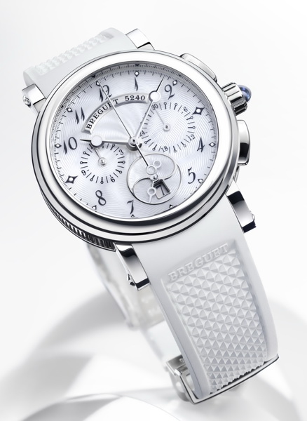 Традиции создания элегантных и утонченных дамских часов Breguet на этот раз нашли свое отражение в модели Marine Chronograph Ladies’. Не так давно мануфактура представила ее премьерную версию, инкрустированную бриллиантами. Теперь же эта модель предстала без драгоценных камней в корпусе диаметром 34,6 мм из 18-каратного розового или белого золота, идеально подходящая как вариант на каждый день. В часах установлен знакомый механизм калибра 8827 — самый миниатюрный в мире автоматический хронограф. У этого шедевра микромеханики есть часовой счетчик, 30-минутный счетчик и индикатор даты. |