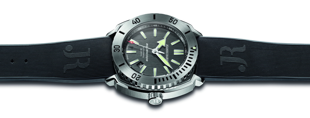 Благодаря эффектному сочетанию светлой стали корпуса и ярко-синего циферблата модель Aquascope от компании JeanRichard не останется незамеченной на вашем запястье. Элегантная новинка выполнена в спортивном стиле, корпус с полированными и сатинированными поверхностями диаметром 46 мм с вращающимся безелем выполнен из нержавеющей стали. Циферблат яркого синего цвета предлагает классический набор элементов: накладные часовые индексы и люминесцентные стрелки (секундная с красным наконечником), покрытые составом Superluminova, и апертура даты на между 4 и 5 часами. Модель оснащена автоматическим механизмом JR60 с 38-часовым запасом хода и дополнена каучуковым синим ремнем с раскладной застежкой. Технические характеристики: |