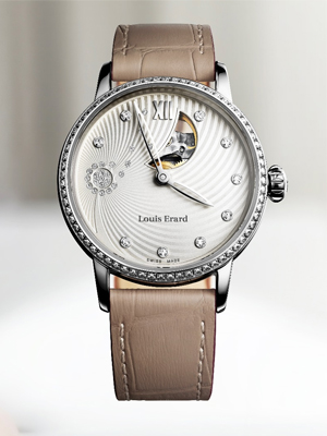 Обновленные Louis Erard Emotion помимо, того что стали обладателями «более утонченных классических форм» - это тонкий корпус часов, тонкий безель, не широкие лапки для крепления ремешков, так же предлагаются в двух основных интерпретациях. Это часы в корпусе из полированной стали и часы с золотым напылением по средствам технологии PVD. Оба варианта часов, на выбор, могут быть равно, как украшены бриллиантами, так и быть без инкрустации драгоценными камнями. Неотъемлемой частью, для всех моделей, и одновременно выразительным элементом, создающим неотразимый образ часов обновленных Louis Erard Emotion, является циферблат.