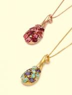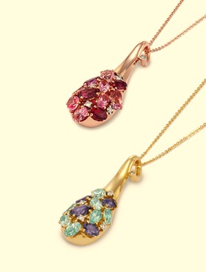 Новинка – это подвеска обладающая, как и другие украшения данной коллекции обтекаемыми, нежными, каплевидными формами, шикарной и продуманной инкрустацией драгоценными камнями и искусительной художественно философией.