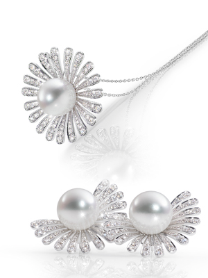 Блеск бриллиантов в сочетании с блеском белого золота делает украшения яркими и роскошными. Жемчужины, установленные в украшении, идеальной круглой формы с минимальными погрешностями добавляют украшениям невообразимой красоты.