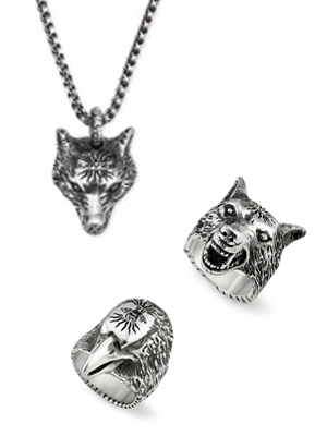 Волчьи и вороньи головы на подвесках и кольцах в сверхуникальной, реалистичной и выразительной визуализации – это новая и брутальная коллекция украшений для сильной половины человечества от всемирно известного бренда Gucci из коллекции «Angry Forest».