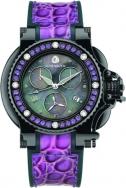 Компания Aquanautic презентовала новую версию популярных женских часов Bara Cuda Violet Этот хронограф, предназначенный для активного отдыха, инкрустирован 32 аметистами трапецевидной огранки, циферблат часов украшен фиолетовым перламутром, а фиолетово-розовый кожаный ремень новой модификации дополняет модную цветовую гамму. Каждые часы поставляются с универсальной отверткой, с помощью которой хозяйка часов может легко, в домашних условиях, поменять маску часов и ремень, придав им новый, неповторимый вид. |