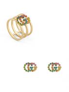 Кольцо и серьги из коллекции Double G и ранее имели в своем образе нежные и легкие черты, захватывающие воображение. Сейчас же этот образ приукрашен еще и яркими и сочными цветами при помощи используемых в украшении цветных драгоценных камней.