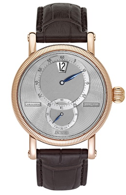 Новый 2013 год станет весьма значимым для часовой компании Chronoswiss. Компании исполняется 30 лет, а его знаковой модели Regulateur – 25 лет. В честь двойного юбилея компания выпустила новую модель Regulateur 30 в лимитированном тираже. Новинка представлена в двух версиях: в круглом корпусе из нержавеющей стали (Ref. CH 2813) или из 18К розового золота (Ref. CH 2811 R). Оснащенный фиксированным рифленым безелем, корпус в диаметре составляет 40 мм. С лицевой стороны корпус снабжен сапфировым стеклом, служащим великолепной защитой для серебристо-стального циферблата, декорированного гильошированным узором. Индикация времени осуществляется на циферблате посредством стрелок из вороненой стали. Часы фиксируются на цифровом указателе, встроенном в секторную апертуру в позиции 12 часа. Минуты индексируются при помощи соответствующей стрелки на децентрализованном дисплее, также расположенном в положении 12 часа. Индикация секунд происходит на маленьком боковом дисплее в позиции 6 часа. Новинка функционирует на базе швейцарского автоматического механизма ETA 2892, усложненного модулем Dubois-Depraz. Модель укомплектована ремешком из кожи аллигатора черного или коричневого цветов. Тираж модели Regulateur 30 (Ref. CH 2811 R) в корпусе из 18К розового золота лимитирован в 130 экземпляров, а модели Regulateur 30 (Ref. CH 2813) в корпусе из нержавеющей стали – в 300 экземпляров. Купить часы Regulateur 30 можно, соответственно, по цене 13 800 и 6400 евро через официальных представителей компании Chronoswiss. |