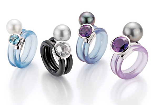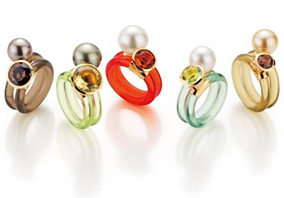 Разные и, казалось, не совместимые материалы соединили в одну коллекцию дизайнеры немецкой жемчужной компании Gellner- силикон, золото, жемчуг и полудрагоценные камни. Удивительно, получилось не только интересно, но и ярко, и очень красиво.