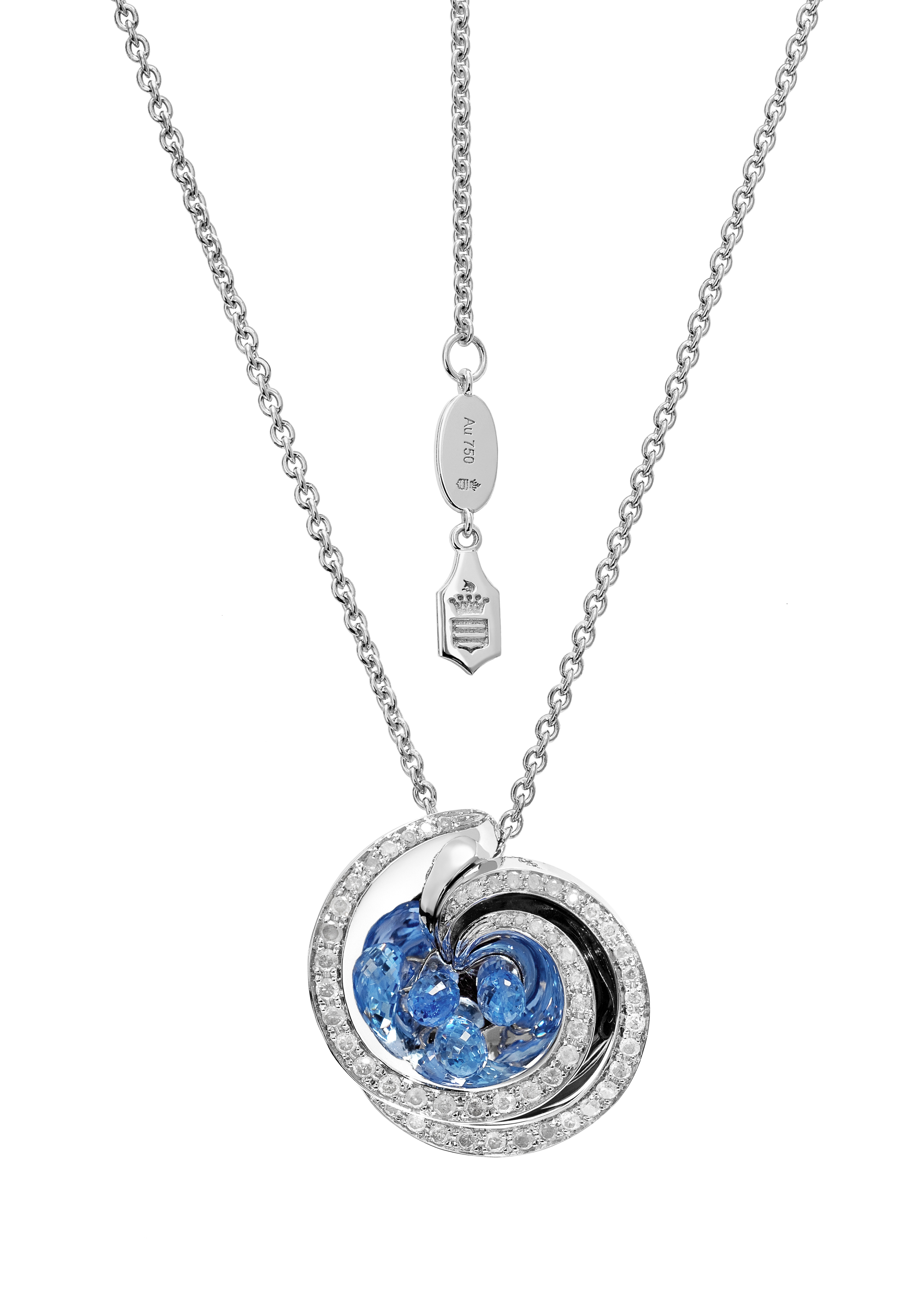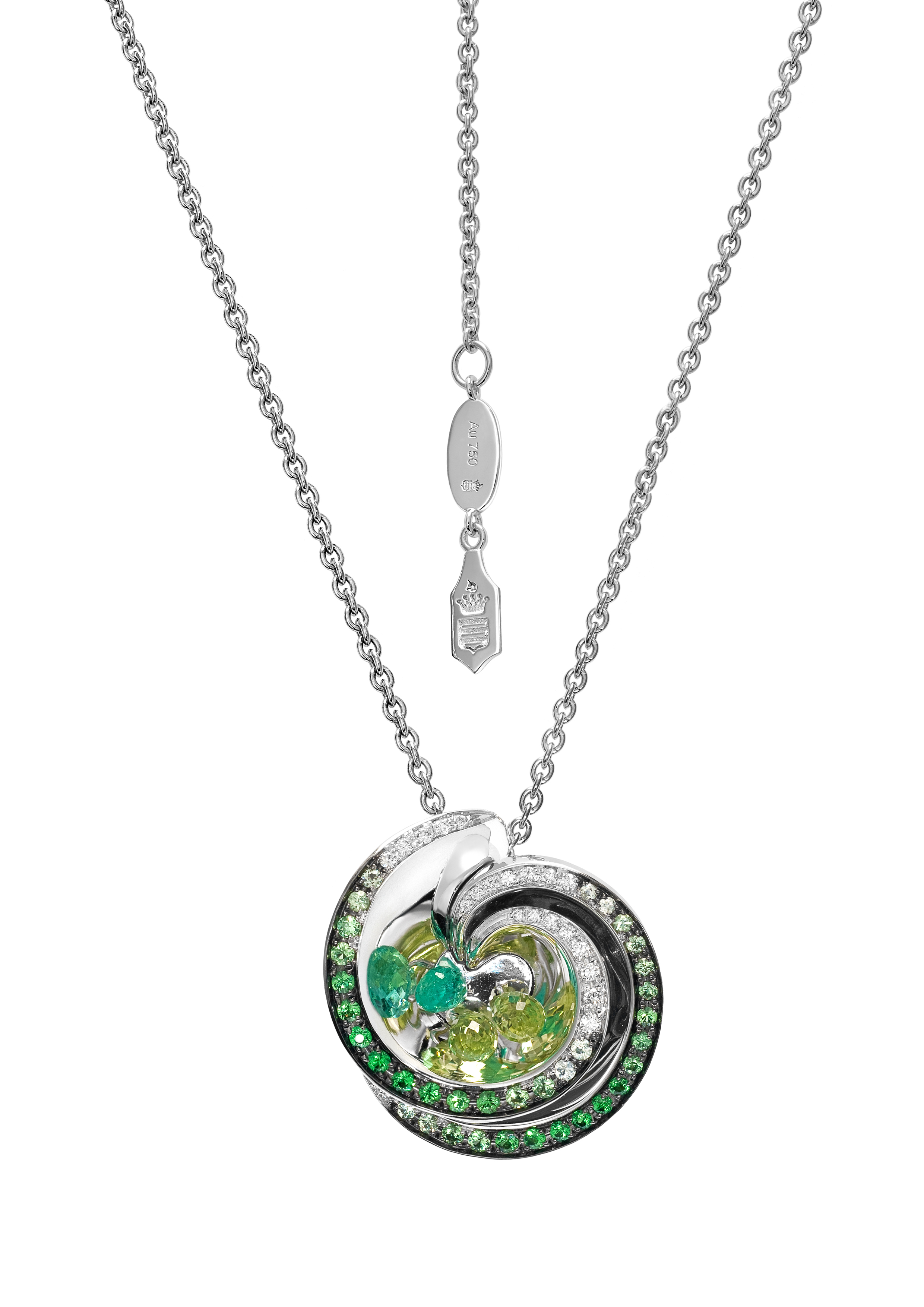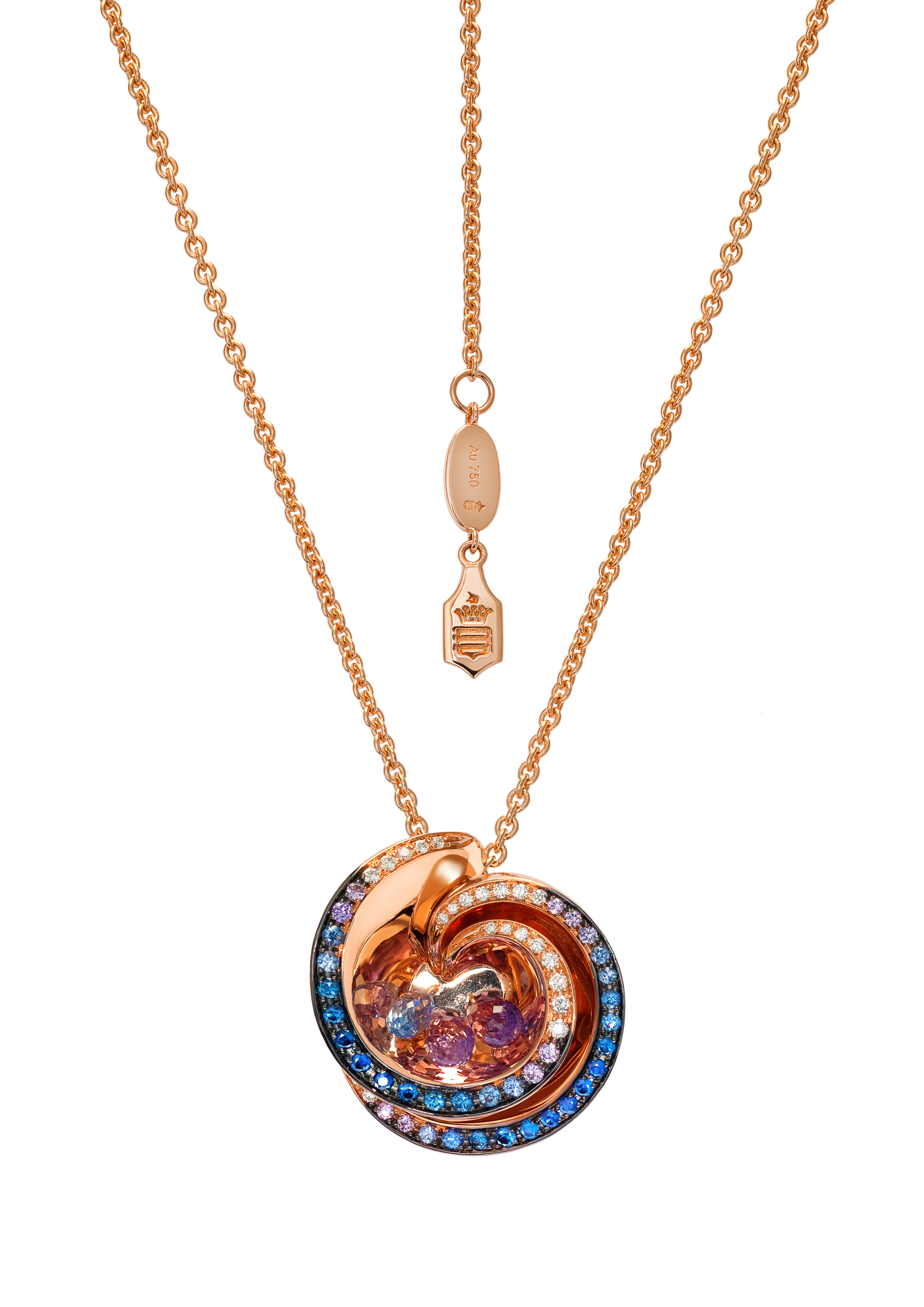 Если кто и умеет передать радость жизни с помощью металла и камней, то это в первую очередь de GRISOGONO. Изделия бренда всегда отличаются яркостью, креативностью и современностью. Именно такие и подвески Chiocciolina. В замысловатой форме слились сапфиры, турмалины, цавориты, изумруды и бриллианты.